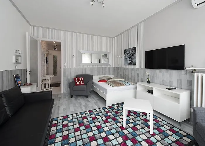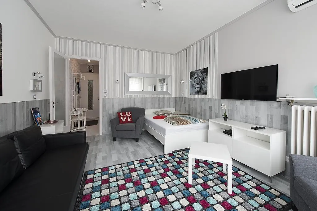 Om van uw vakantie in Boedapest te genieten, verblijf in 1-slaapkamer Monroe Central Boedapest appartementen, gelegen op wandelafstand van 11 minuten van de Sint-Stefanusbasiliek en op 2 km afstand van de Matthiaskerk. Het appartement van 35 m² biedt uitzicht op de stad.